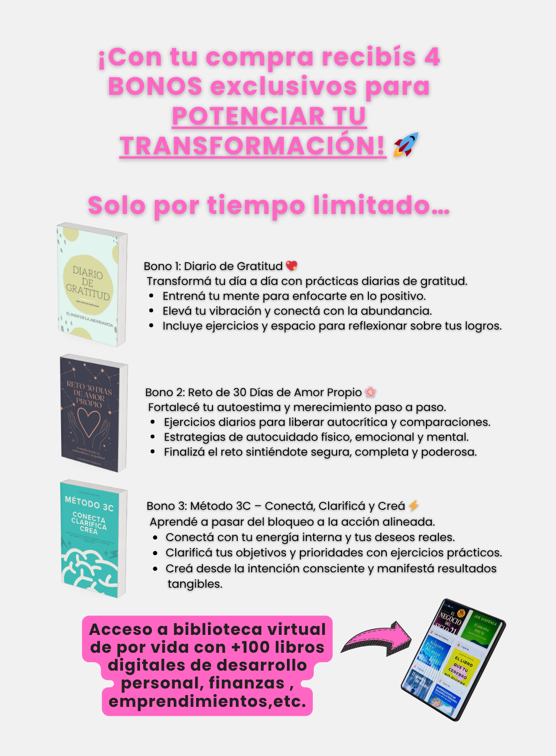 Al comprar el ebook, recibís 4 bonos adicionales que potencian tu transformación: